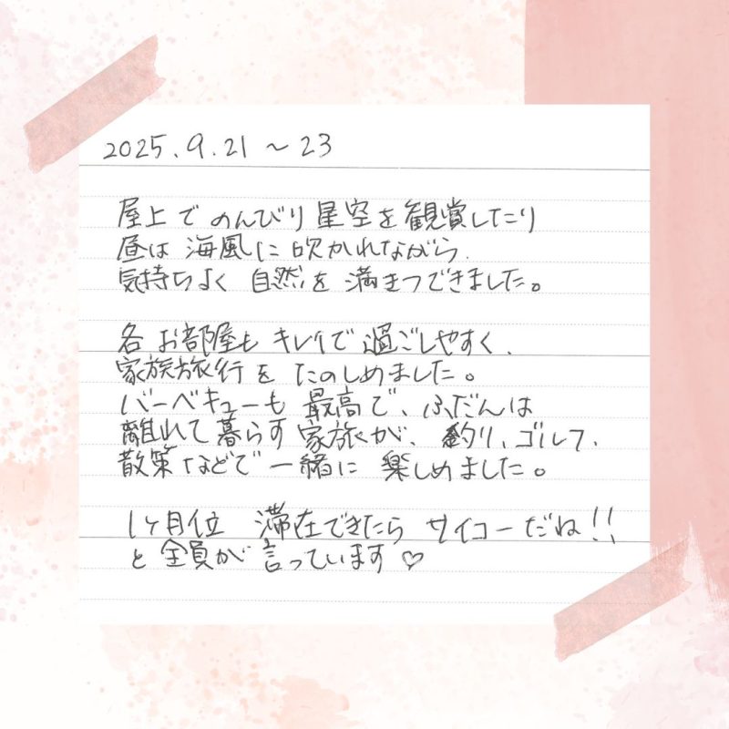 貸別荘「碧 ai」をご利用して下さったお客様からご感想をいただきました!